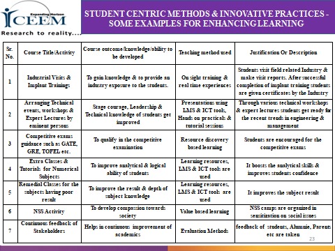 - Use of many ICT tools along with NPTEL video lectures, animations, PPTs for effective learning.